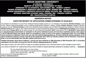 You are here: Home1 / Publications2 / Admission Announcements 2012-13 at a few good places – 53 / Indian-Maritime-University-Application-Deadline-Extension