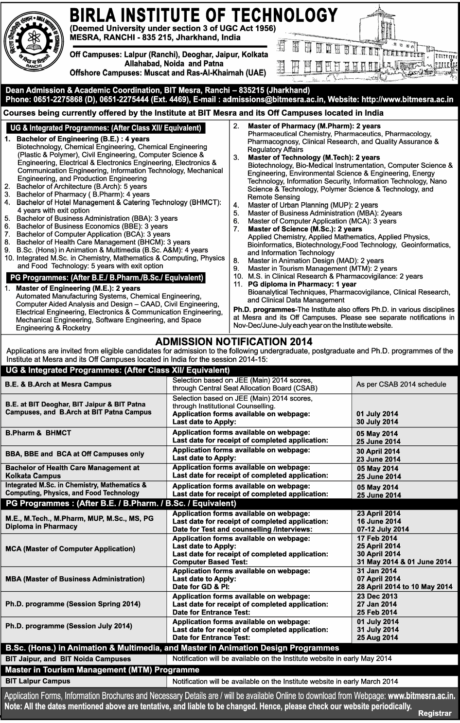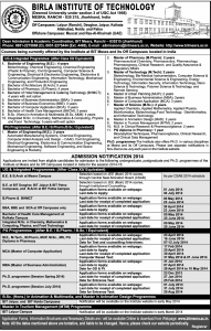 You are here: Home1 / Publications2 / Admission Announcements 2014 by some premier institutions3 / Birla-Institute-of-Technology-Admissions-2014