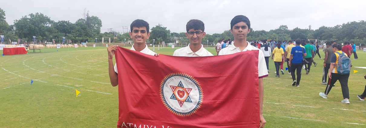 The CBSE Athletics Cluster Meet was a moment of pride and achievement for AVM, in the academic year 2025–26. On 5th August, the event began on the lush green grounds of SGVP, Rajkot. Under the guidance of Kalpesh Sir, three athletes from Atmiya Vidya Mandir got the opportunity to participate in the competition in the following events: